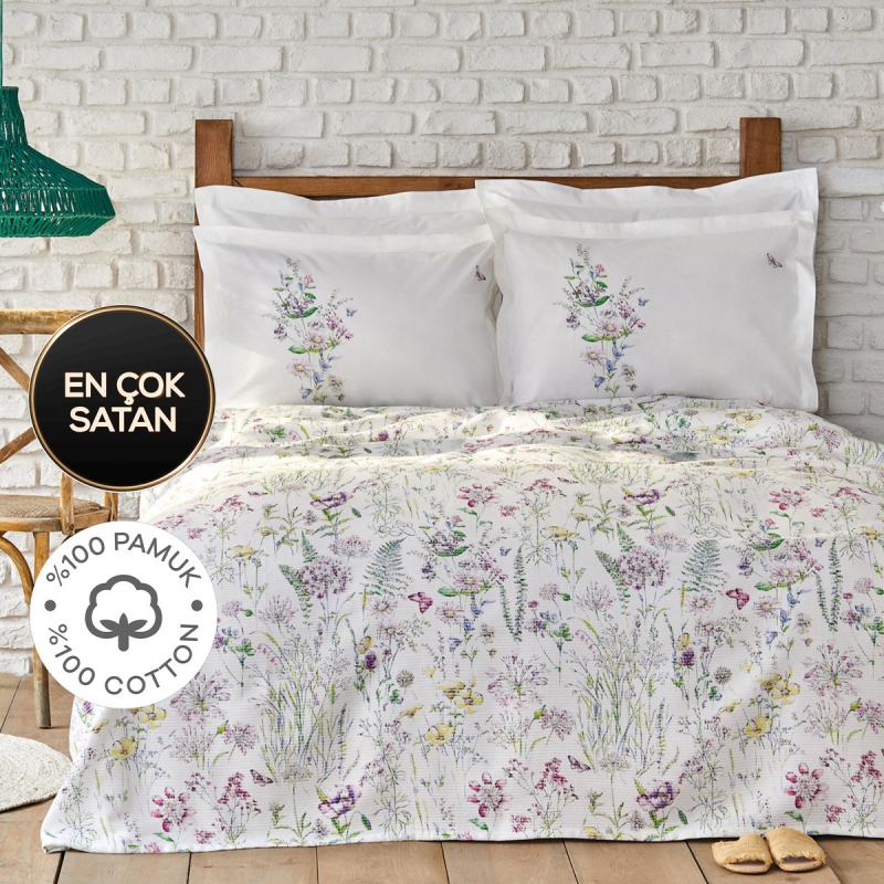 % 100 Pamuk Çift Kişilik Pike Hediyeli Nevresim Takımı
